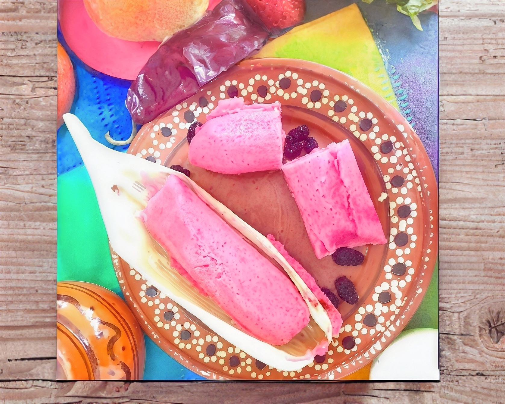 Tamal de masa natural de maíz, relleno de queso Oaxaca y bañado en una sabrosa salsa roja tradicional.