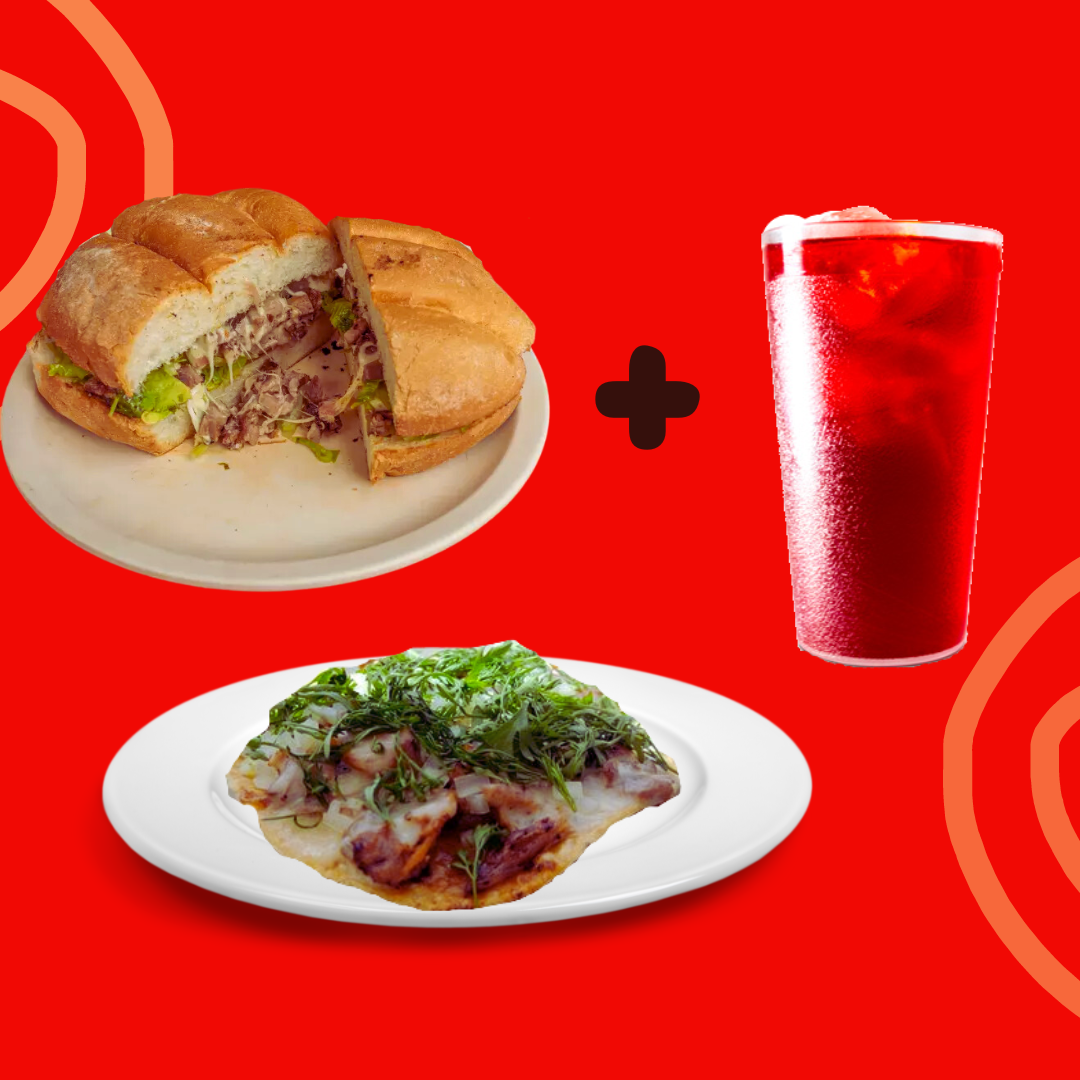 1 Tortas Chuleta + 1 Volcan Pastor + 1 Agua Fresca
