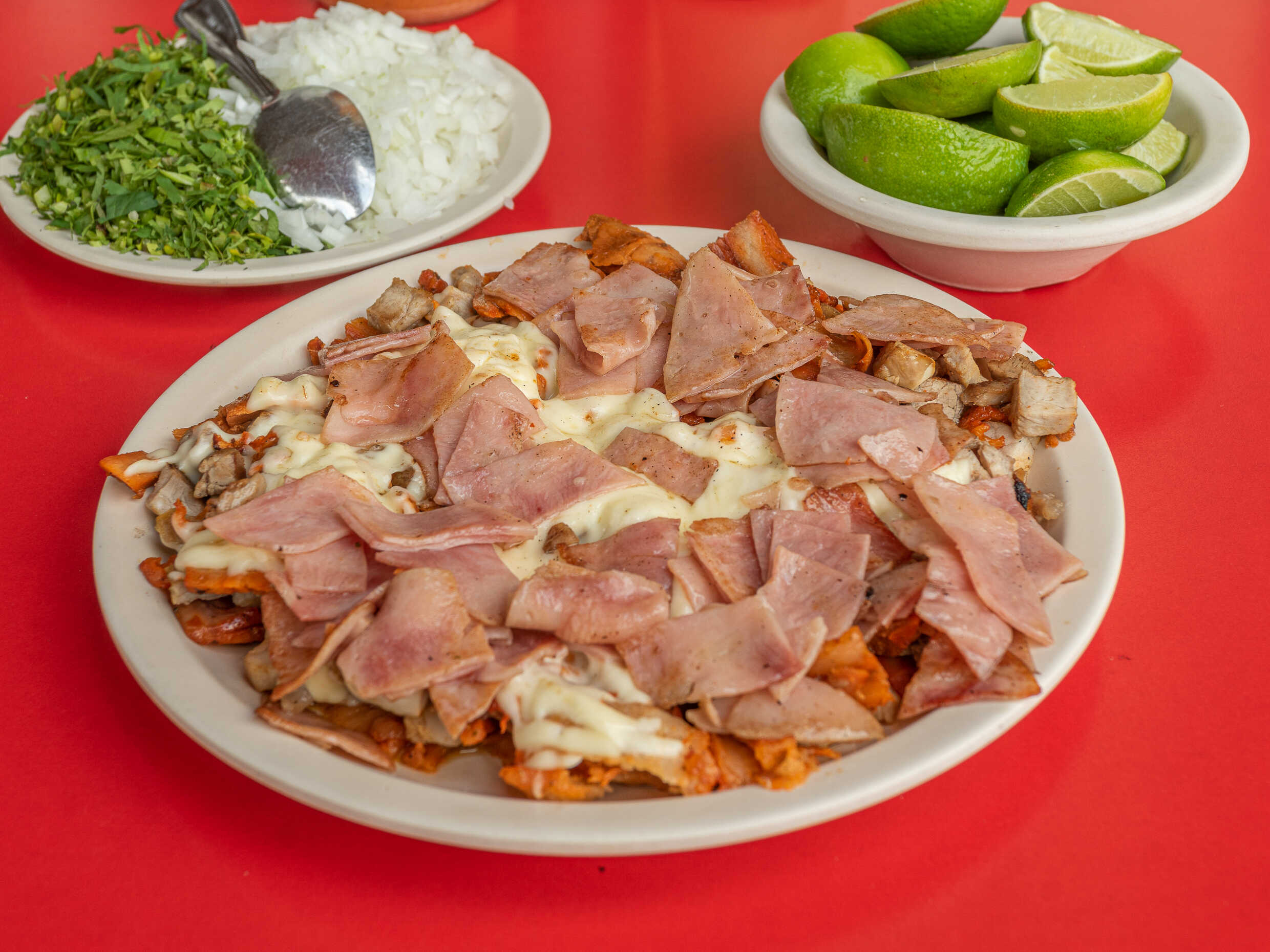 Bistec, pastor, queso y jamón.