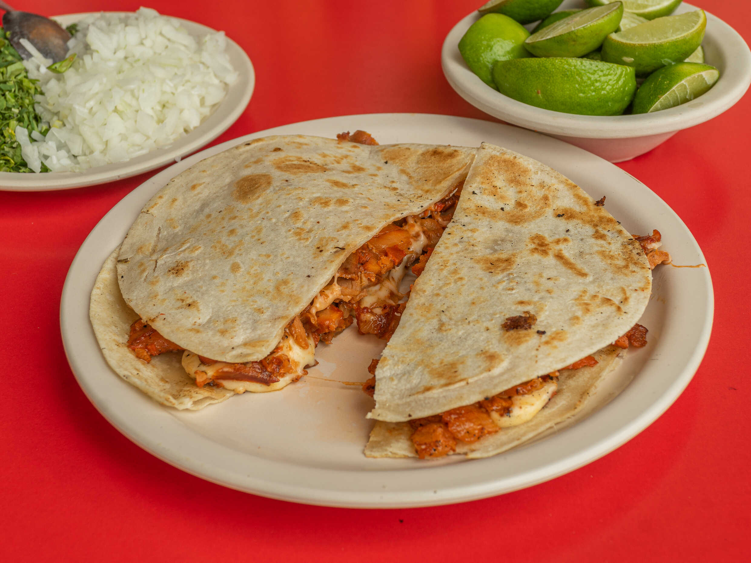 1 Kg de pastor acompañado de cebollitas asadas, salsas, verdura, limones y tortillas.