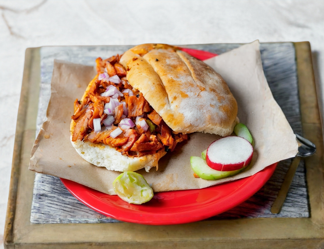 Pan pita, chuleta y queso oaxaca.