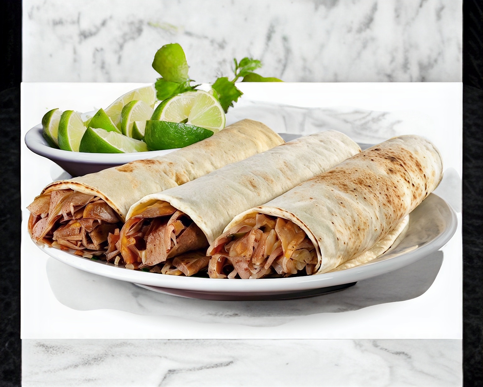 Tortilla de harina, arrachera y queso oaxaca.