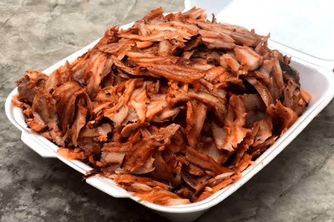 Carne al pastor,con 50 tortillas de maíz, cilantro, cebolla, limón, tostadas, cebolla asada.
