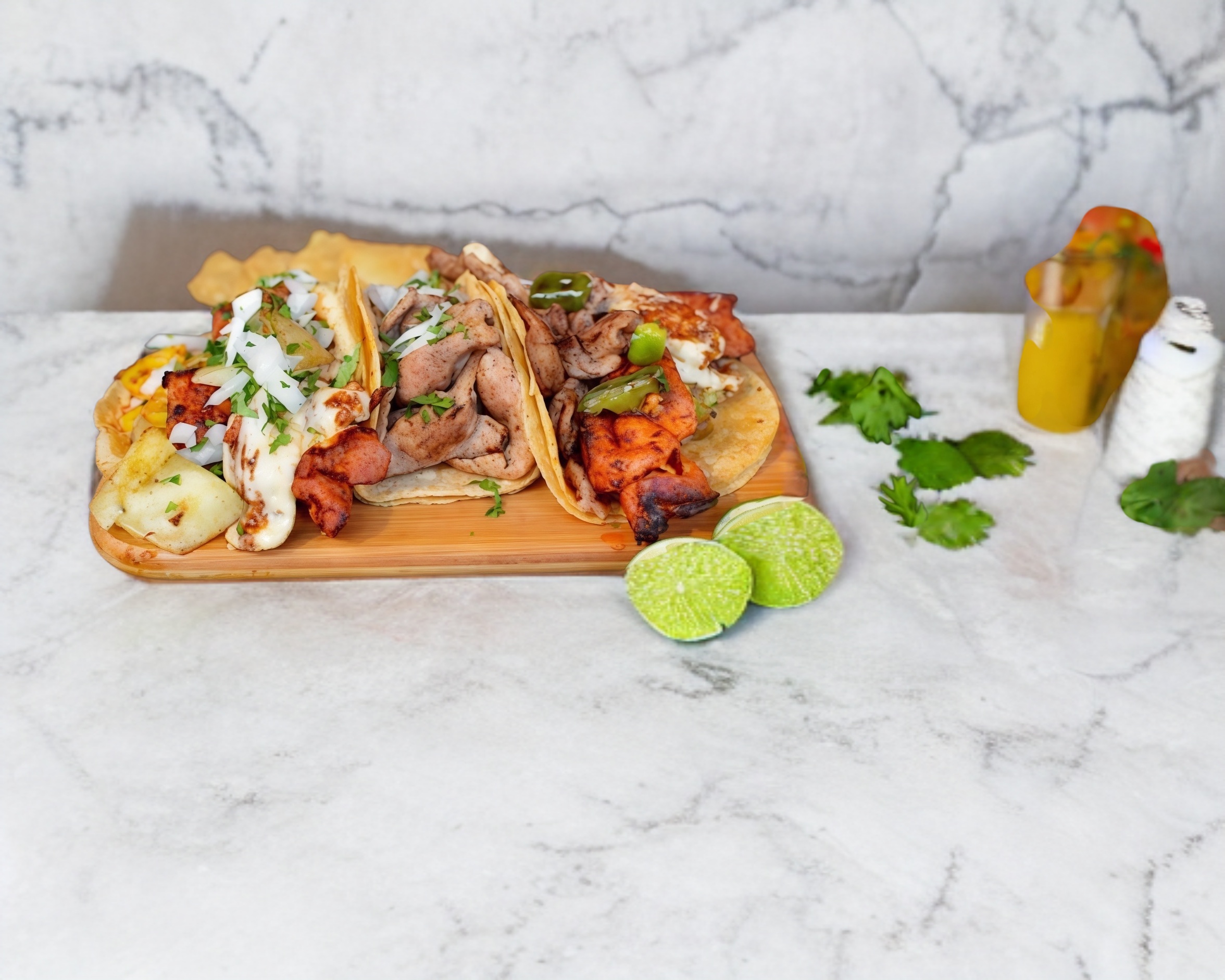 Pastor, chuleta,piña, jamón y Queso Oaxaca. Con 25 tortillas de maíz.