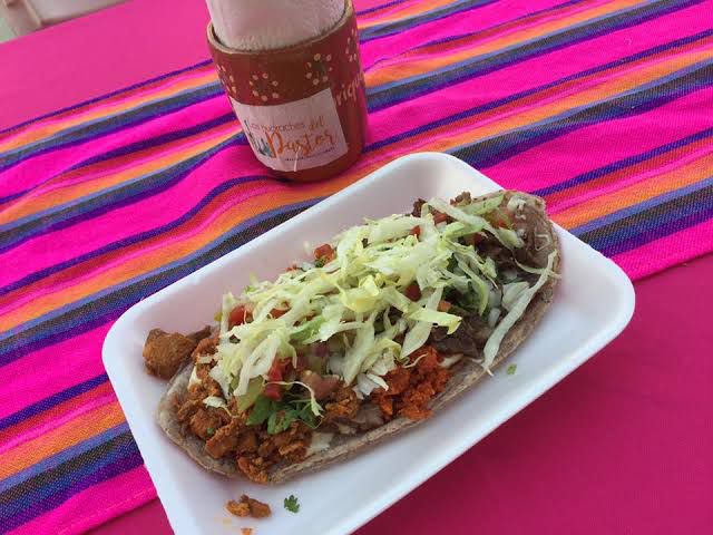 Pastor, jitomate, aguacate frijol y queso Oaxaca.