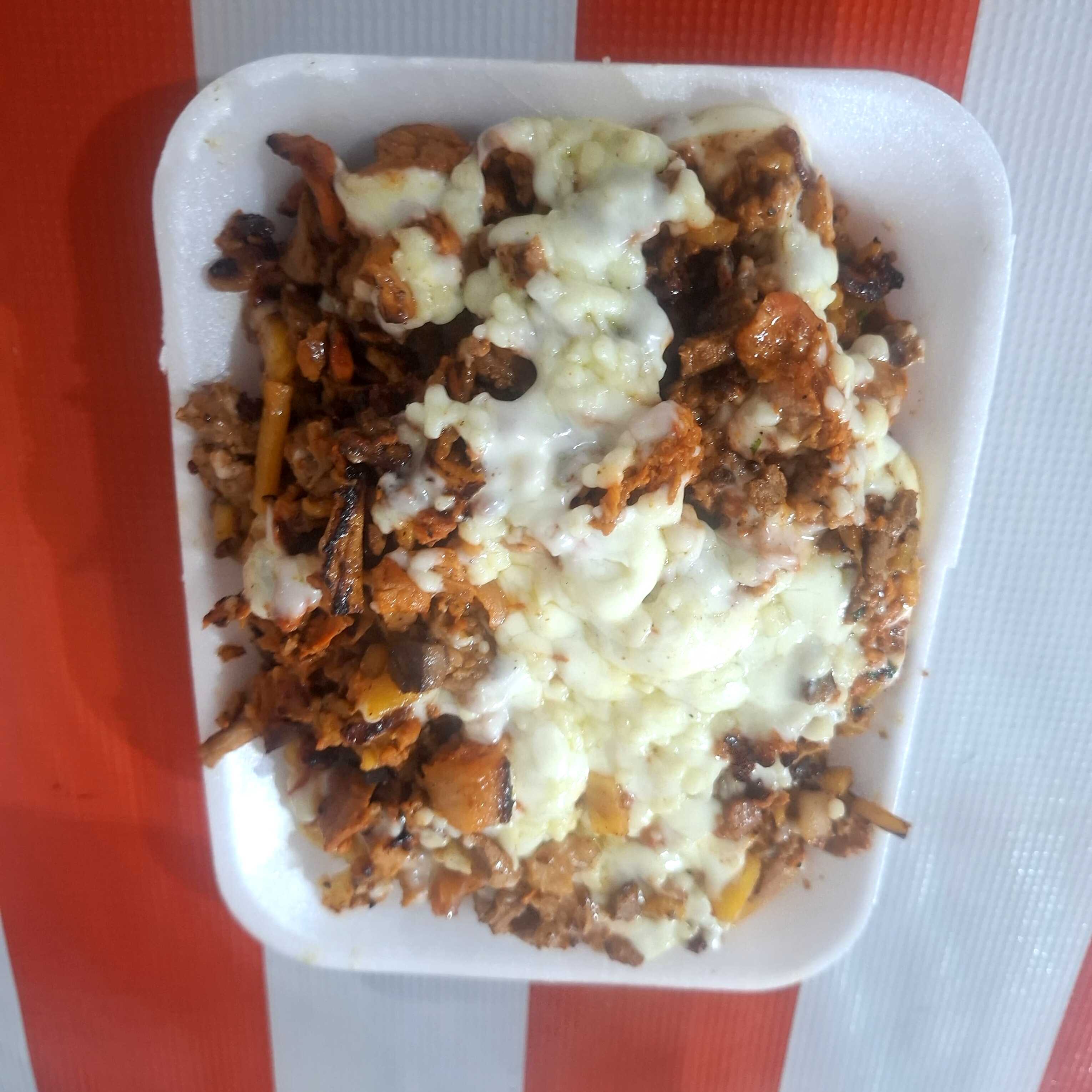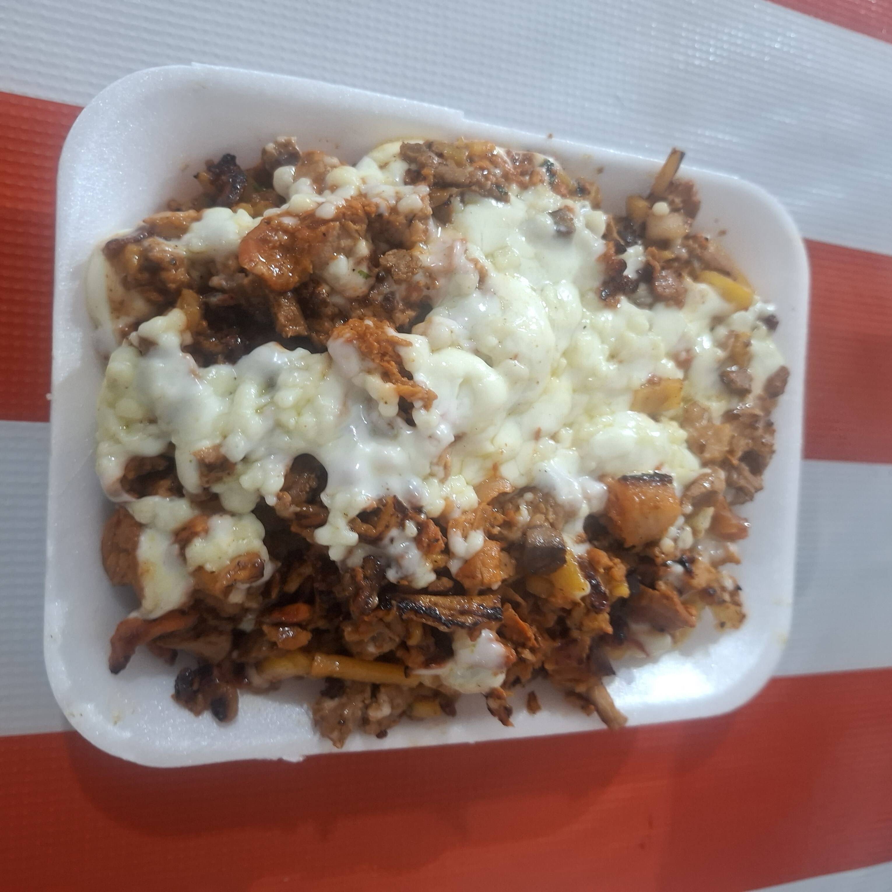 CARNE, QUESO, CEBOLLA, SALSAS TORTILLA DE HARINA 1 PIEZA