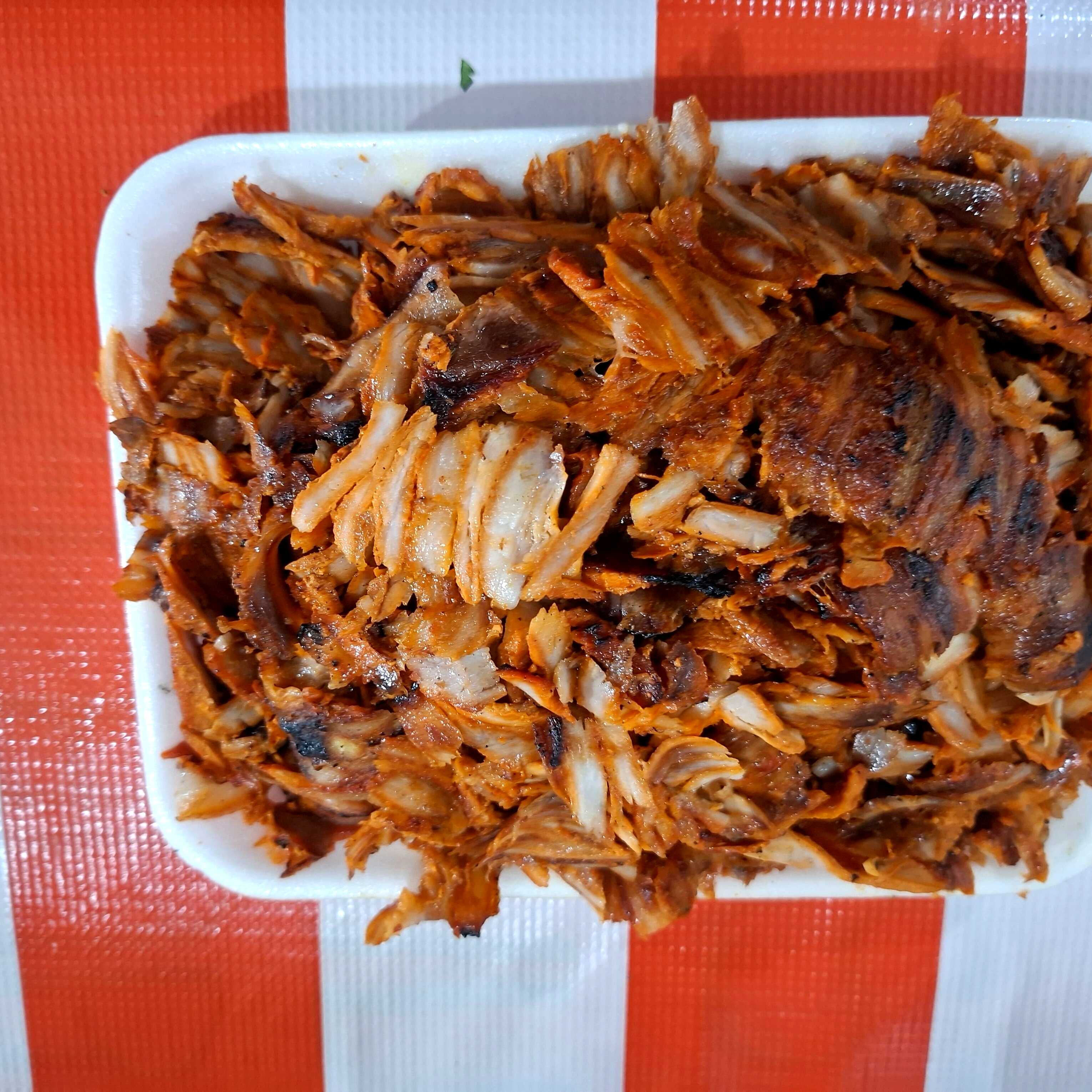Pastor, morron, cebolla, tocino y queso , ncluye tortillas , salsas, limones, verdura y ensalada