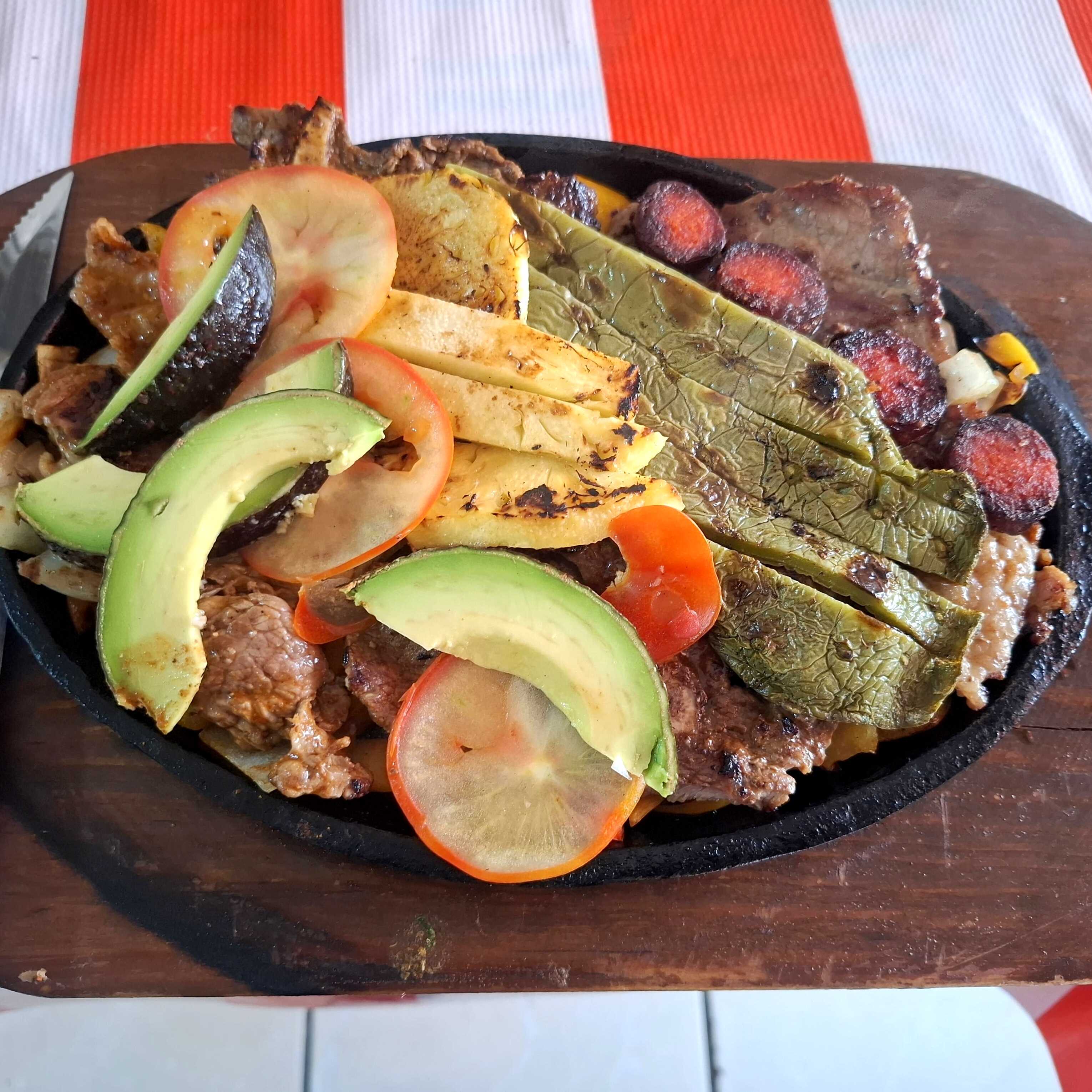 BISTEC, NOPALES, CHORIZO, PÍÑA, JITOMATE Y AGUACATE, VERDURA PICADA. PARA 1 PERSONA