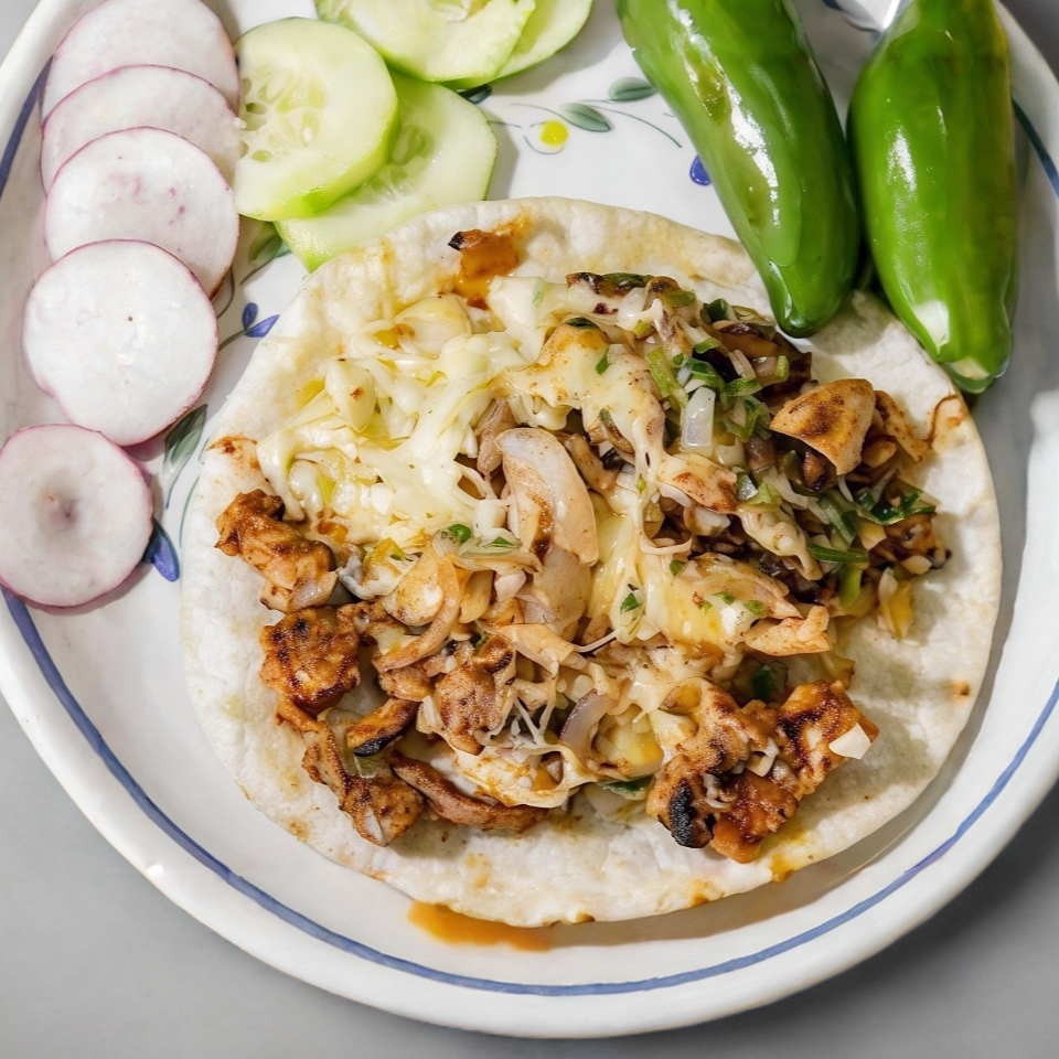 1 Tortilla de harina, queso y carne.