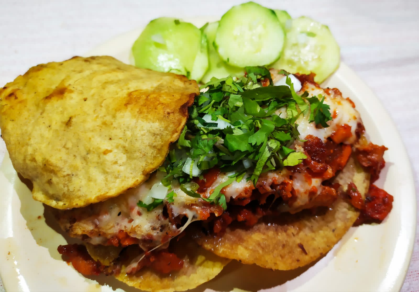 Bistek Pastor cebolla aguacate queso con costra