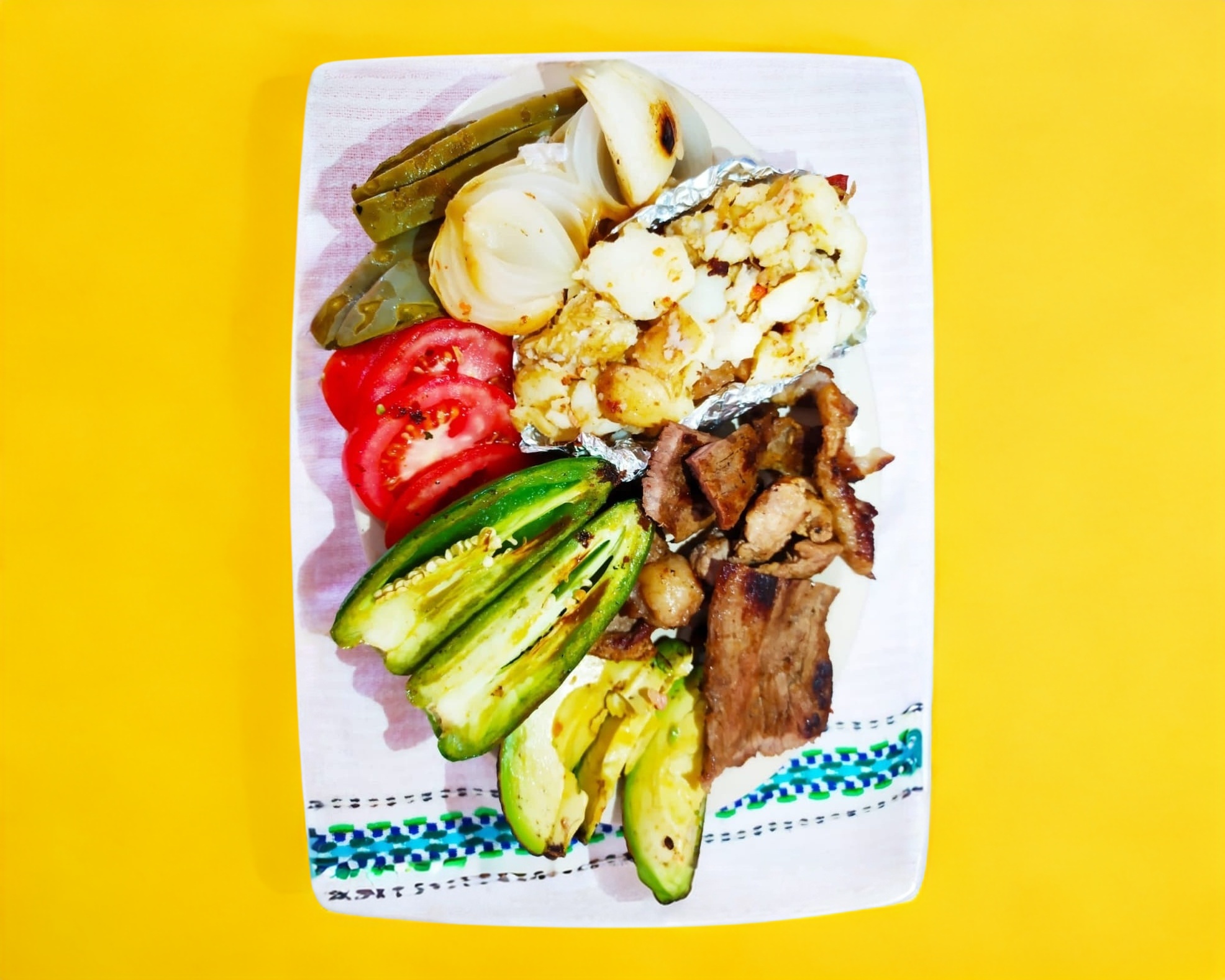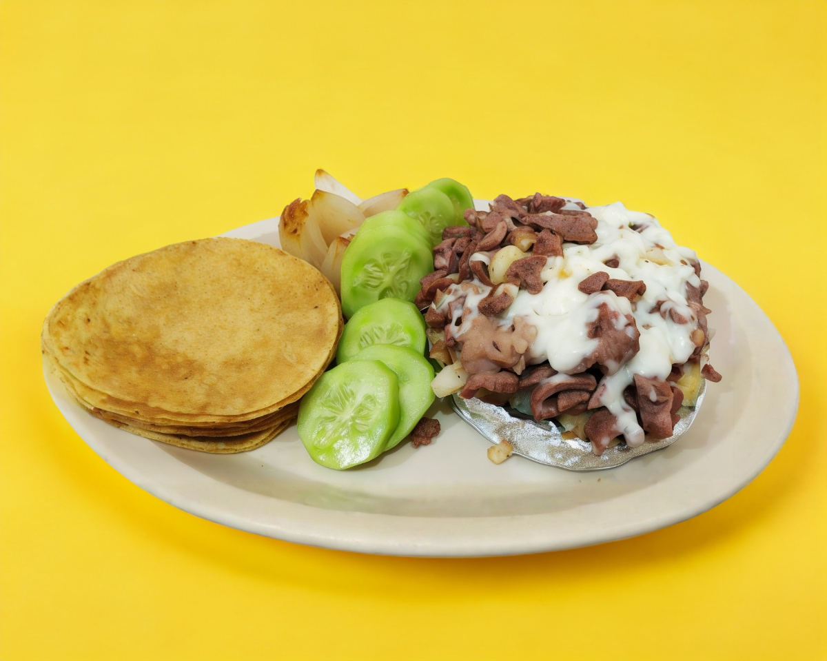 Pastor bistek papá con mantequilla y queso tortilla llas