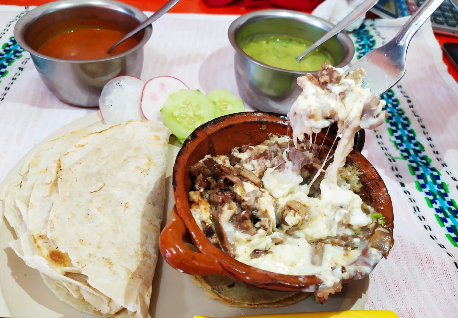 Queso vien fundido y con 3 tortilla de harina