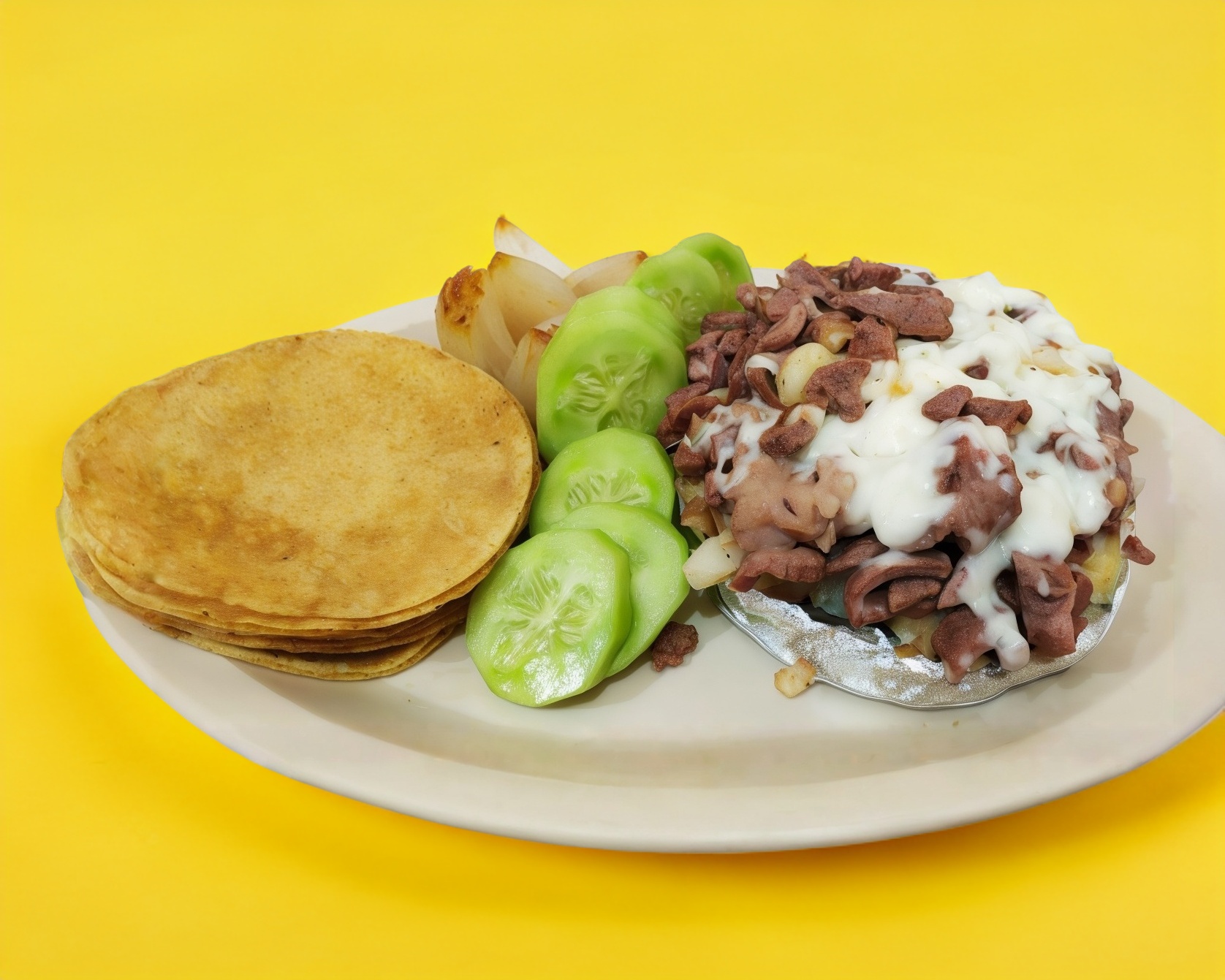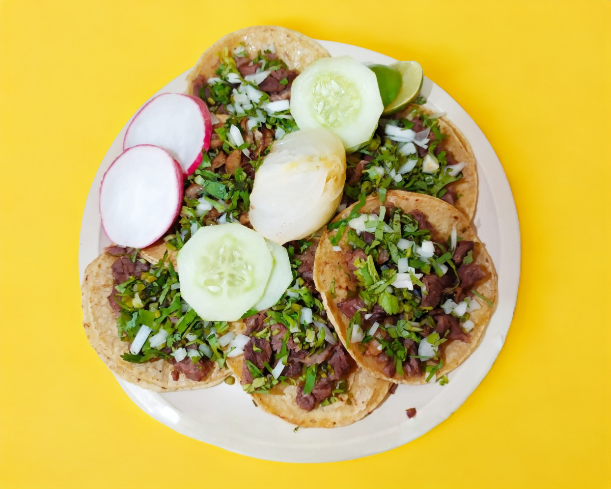 BISTEC de reS con 3tortillas de harina y queso