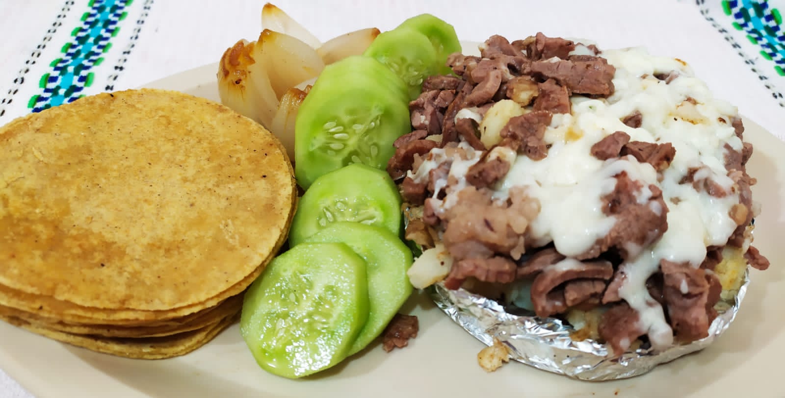 Harrachera de res con papá con mantequilla.y queso con 10pz de tortilla