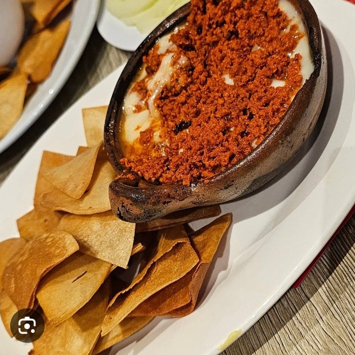 Queso fundido, pastor (3 pz de tortilla de harina)