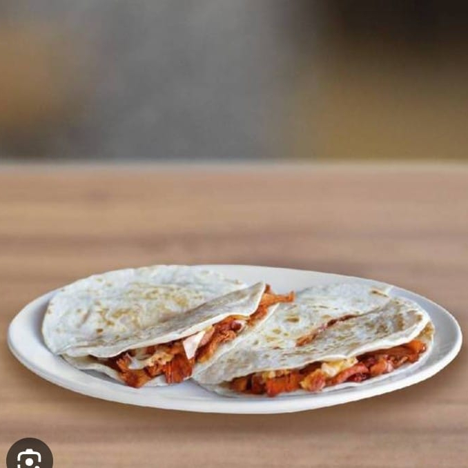 Tortilla de harina, chorizo, queso fundido 2 pzas