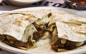 Carne, cebolla, poblano, queso y tortillas para 14 tacos.