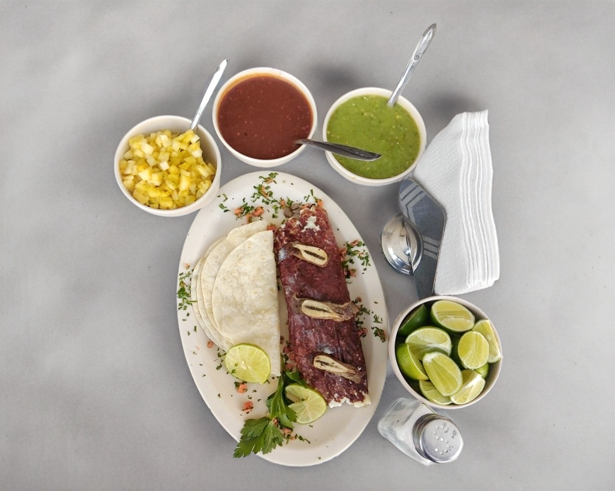 ELIGE CARNE .ACOMPAÑADOS DE SALSA CHIPOTLE O VERDE GUACAMOLE O PIÑA CON LIMON