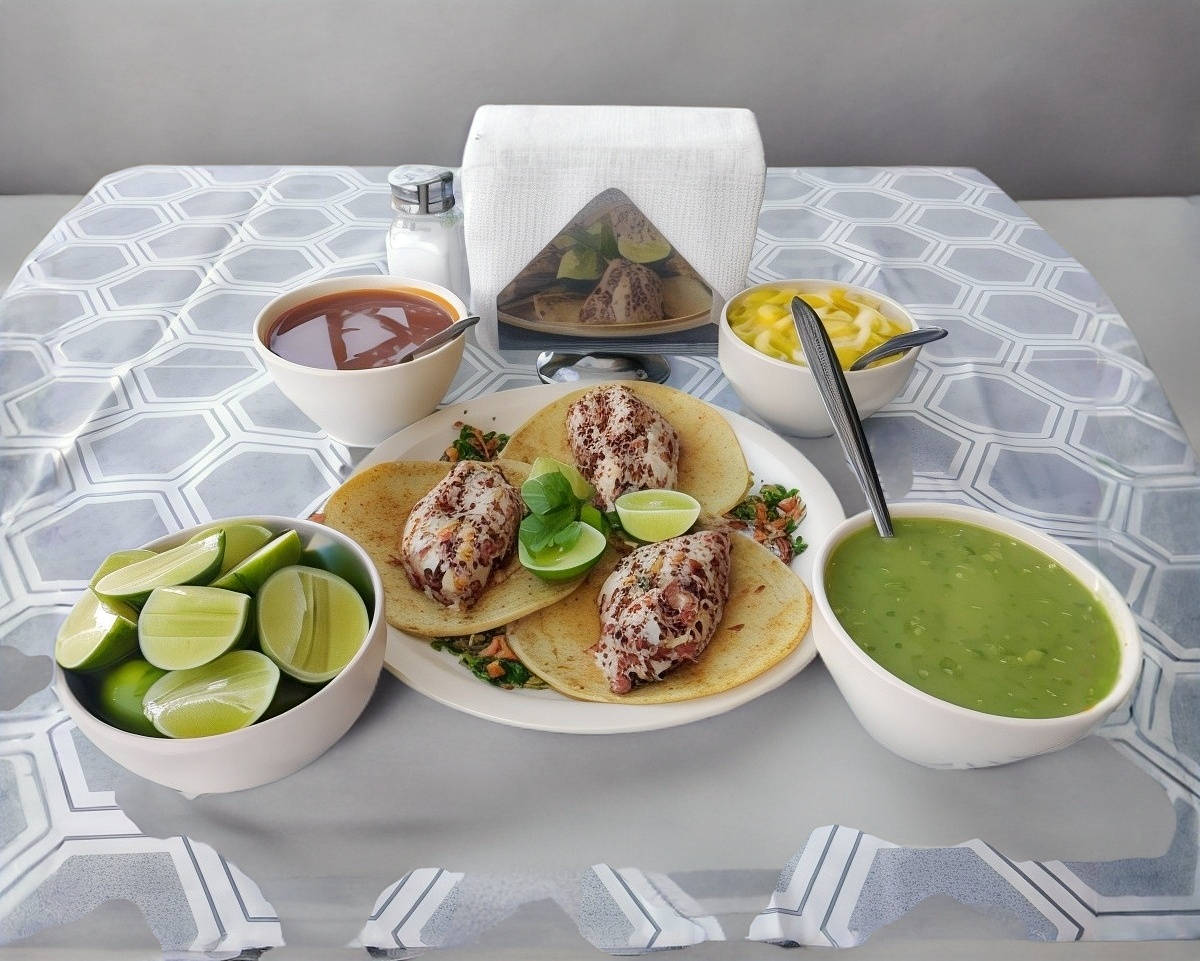 ORDEN DE 3 TACOS ACOMPAÑADOS DE UNA SALSA VERDE GUACAMOLE O ROJA CHIPOTLE O PIÑA CON LIMON