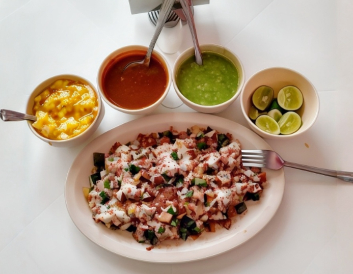 ACOMPAÑADOS DE SALSA ROJA de CHIPOTLE O VERDE TIPO GUACAMOLE O PIÑA y LIMON