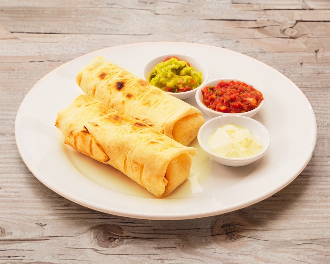 (4 Pzas.) De tortilla de harina, protina de tu preferencia, y queso.
