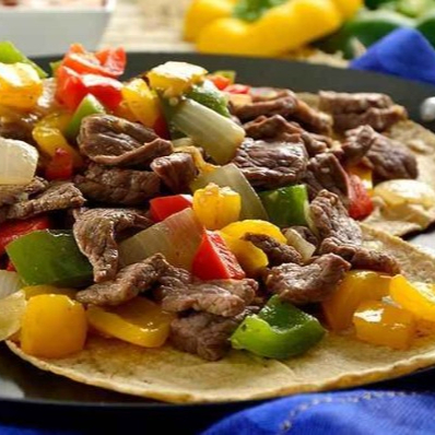 Salteado de arrachera con pimientos y cebolla.