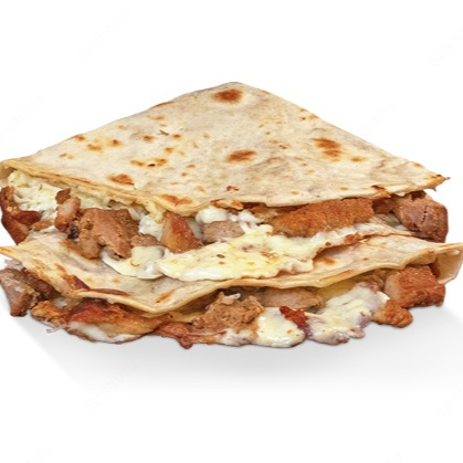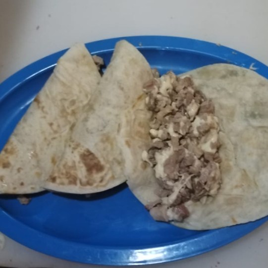 Tortilla de harina con queso fundido y carne a elegir.