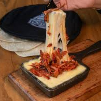 Cazuela de queso fundido mezclado con carne a elegir.