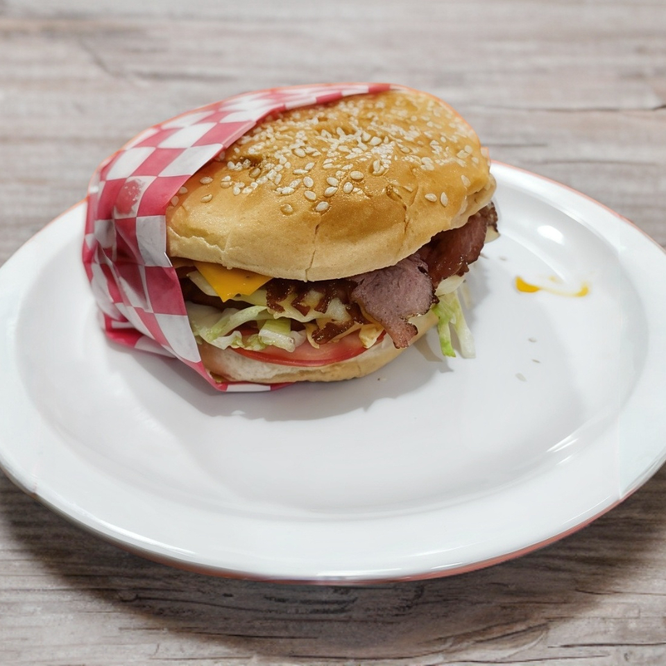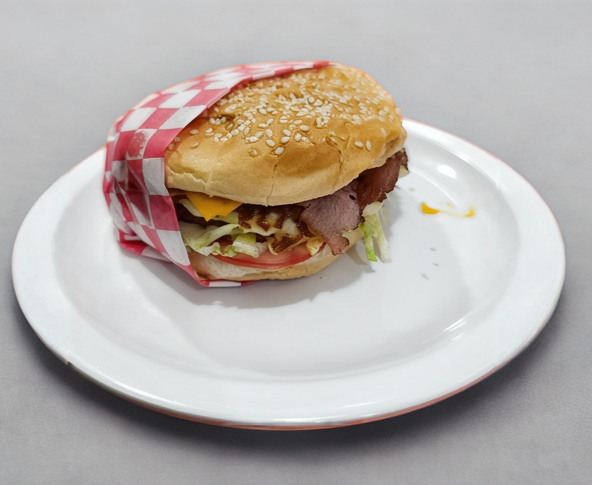 Carne de res, tocino, jamón, lechuga, jitomate,cebolla y queso