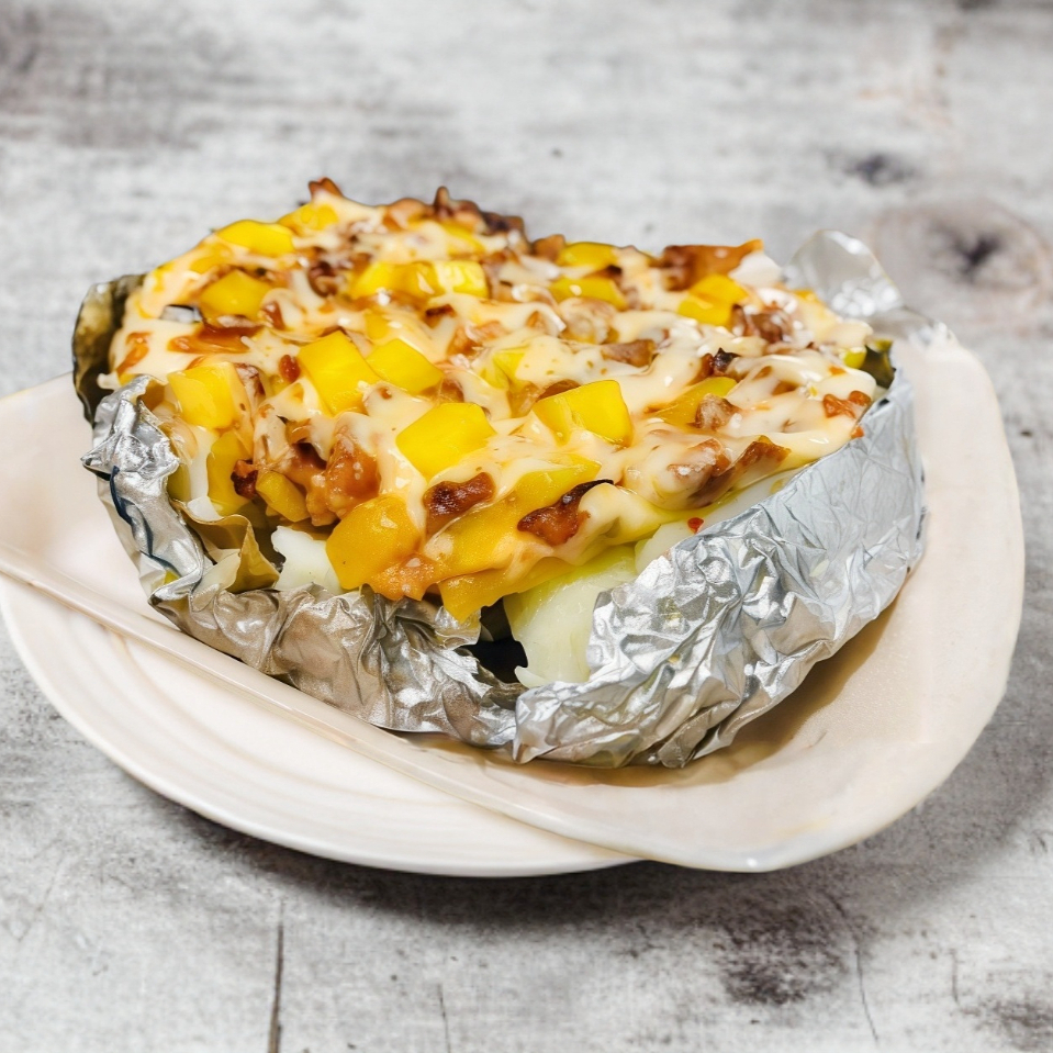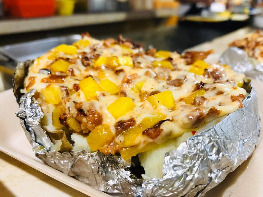 Papa con mantequilla rellenas de carne