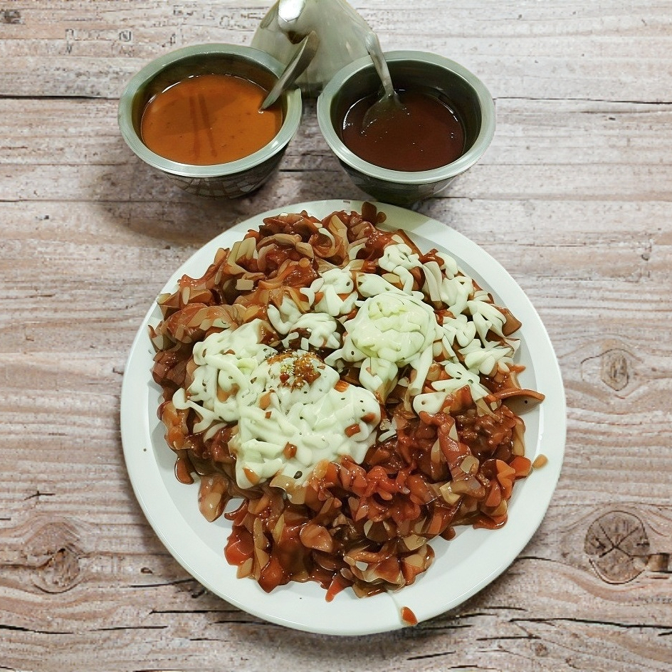 Pastor, bistec, chuleta cebolla y queso gratinado