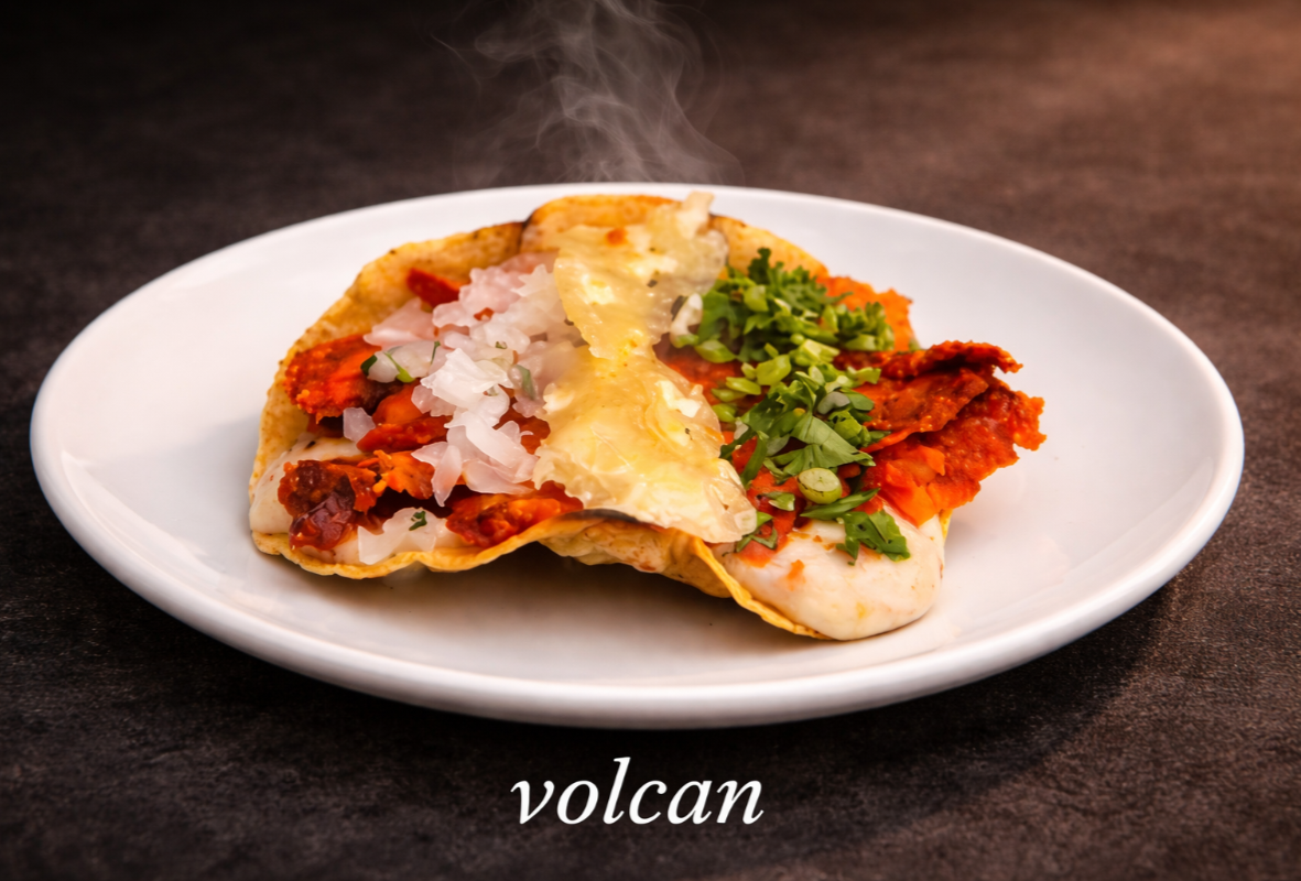 1 pza Volcán con queso tortilla de maíz tostada y crujiente, cubierta de queso fundido y la carne de tu elección.