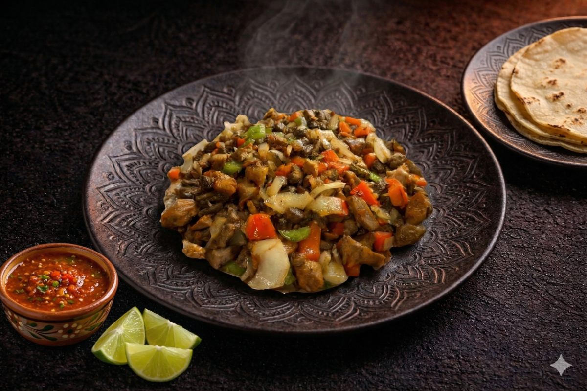 1 pza Bistec, chorizo, chuleta, tocino, cebolla, champiñones y queso.