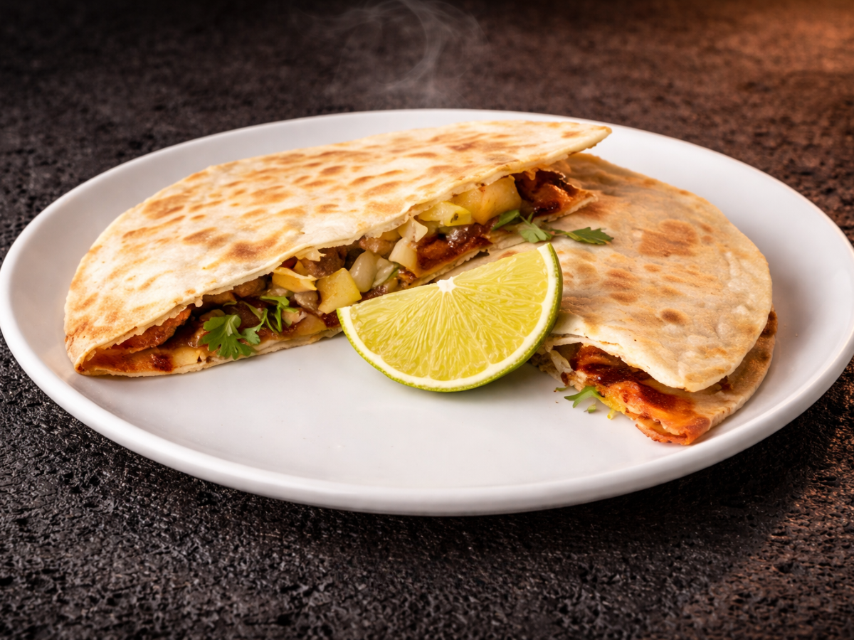 1 pza MEDIA GRINGA con queso, tortilla de harina suave, queso fundido al punto y nuestra deliciosa carne al pastor.