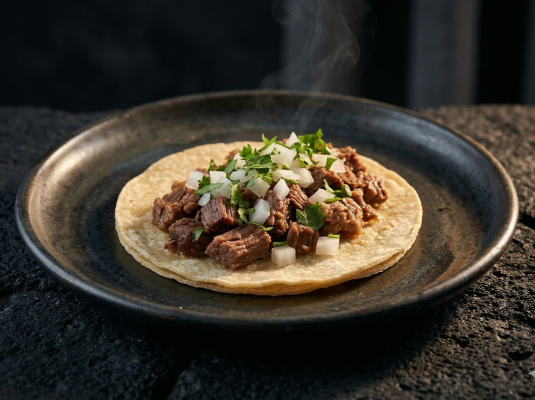 1 pza Taco de carne de res suavecita y perfectamente picada cocinada a fuego lento en su propio jugo para ese sabor irresistible.