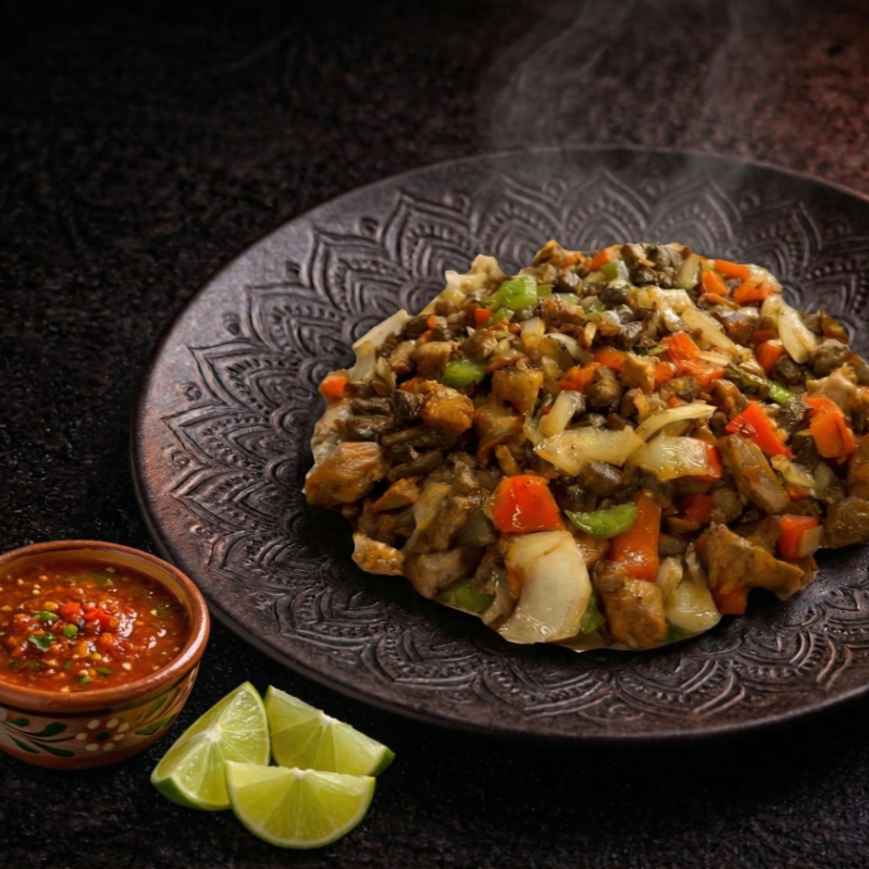 1 pza Bistec, chorizo, chuleta, tocino, cebolla, champiñones y queso.