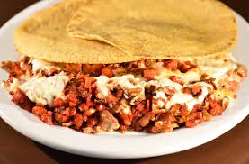 Una bomba de sabor. Totopos crujientes con salsa roja o verde, alambre de bistec, tocino, pimientos y queso gratinado, acompañados de crema, cebollita, cilantro, aguacate y frijolitos refritos. Directo en Didi Food para que no te quedes con el antojo.