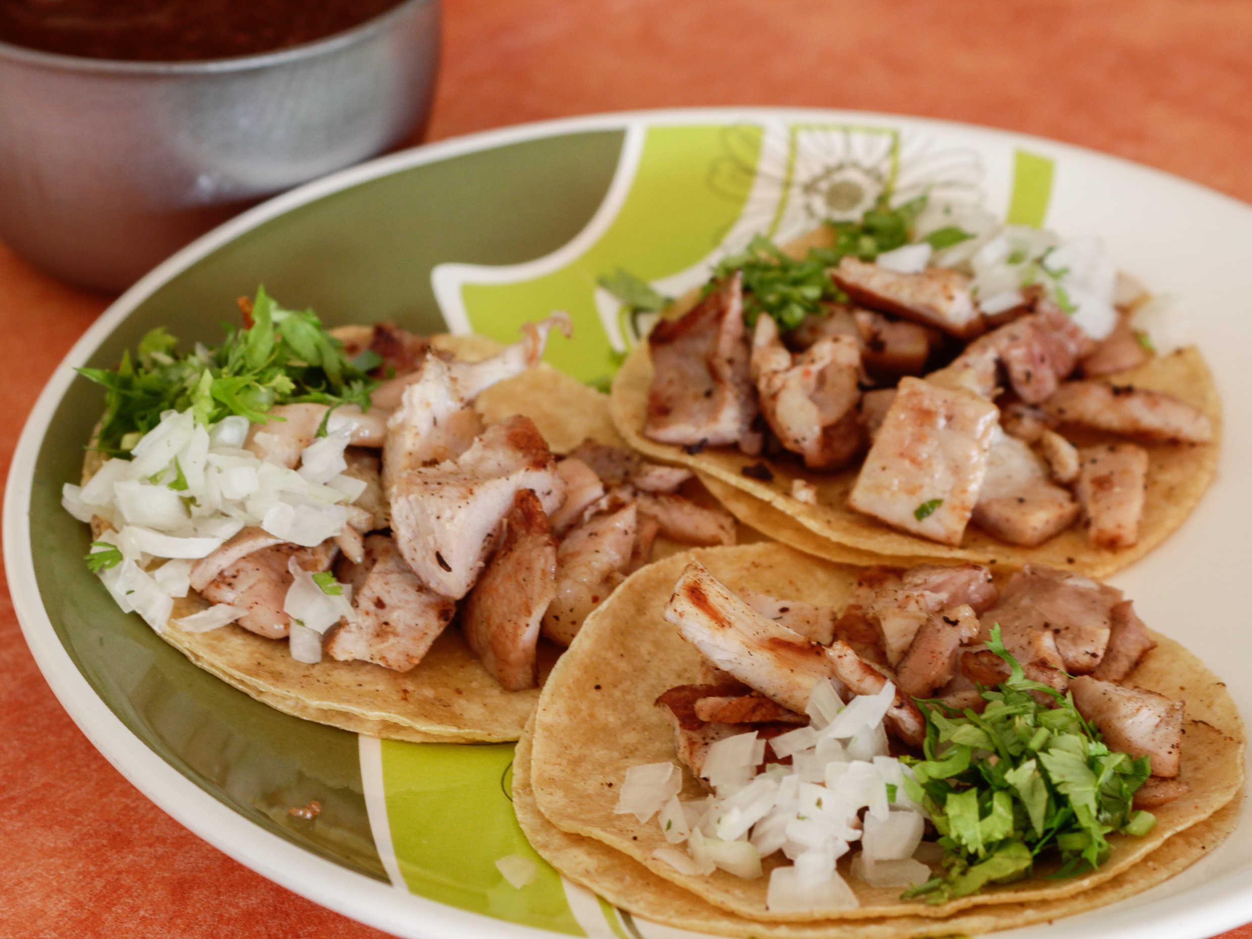 Para 5 personas. Incluye kilo de carne al pastor, tortillas, salsas, cebolla, cilantro picado y limones.