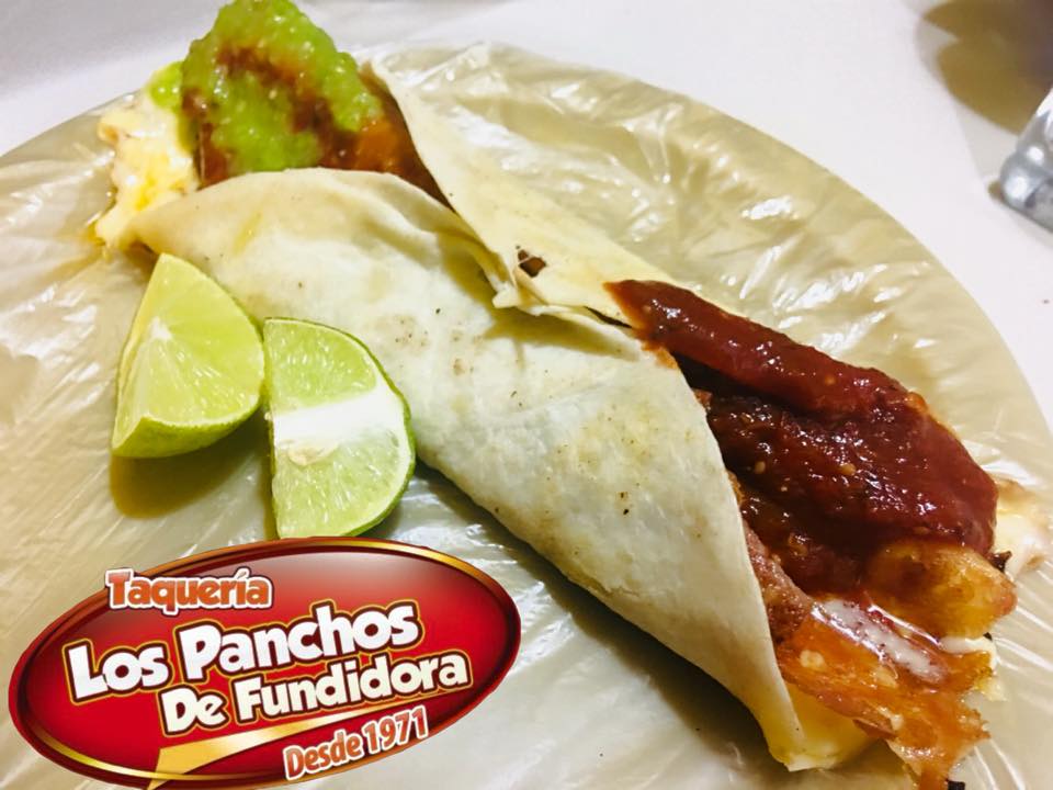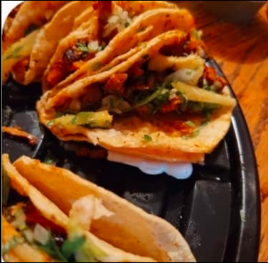 Carne al Pastor envuelta en un chicharrón de queso en tortilla de Harina