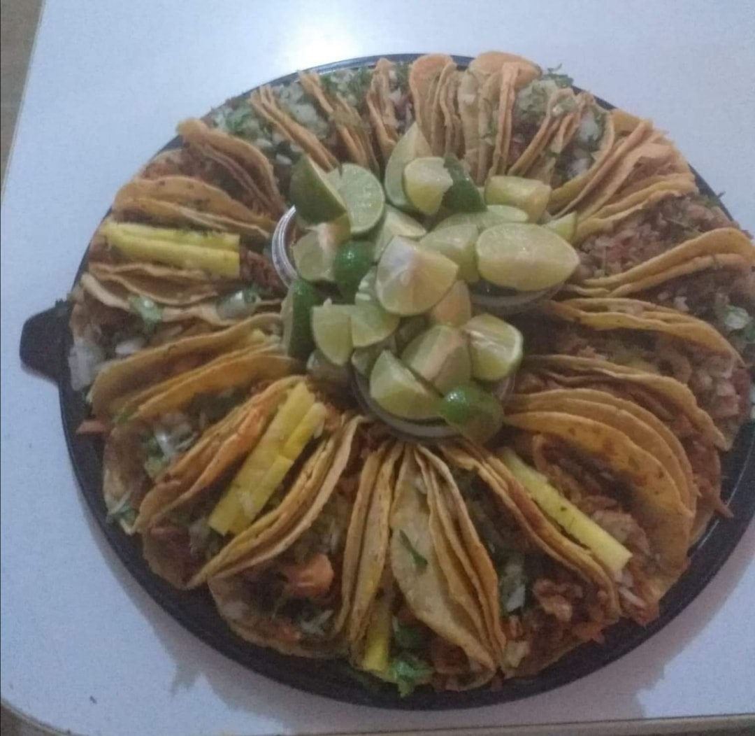 Incluye kilo de carne al pastor, tortillas, salsas, limones, cebolla y cilantro picado.