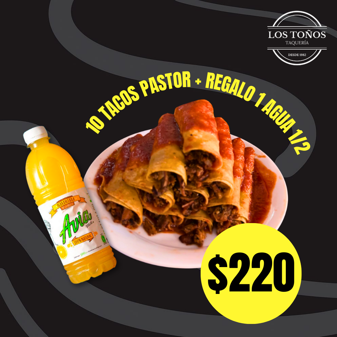 10 Tacos Pastor + Regalo 1 Agua 1/2 Litro