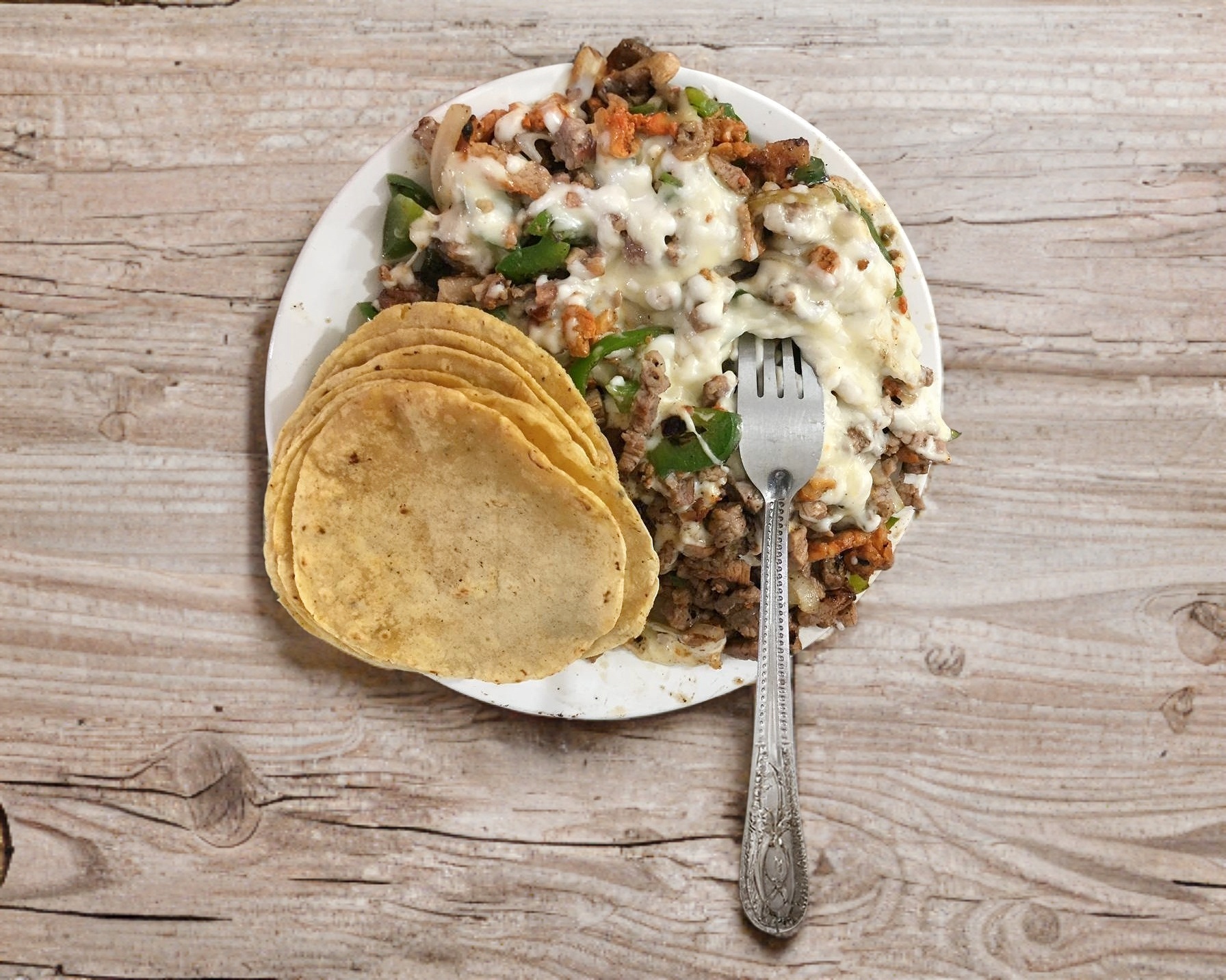 Bistec, chorizo y queso.