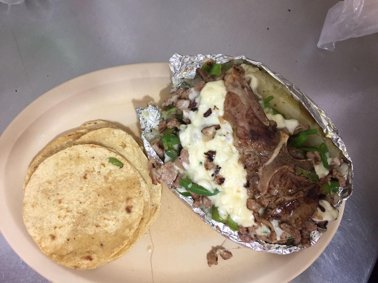 Morrón, tocino, cebolla y queso. Carne a elegir: .pastor , bistec , costilla O chuleta