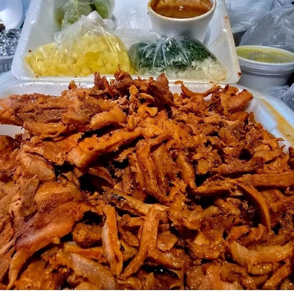 Delicioso cerdo marinado con especias y achiote, asado en trompo y servido con piña.