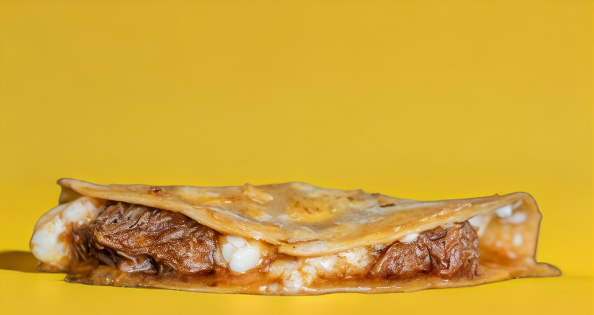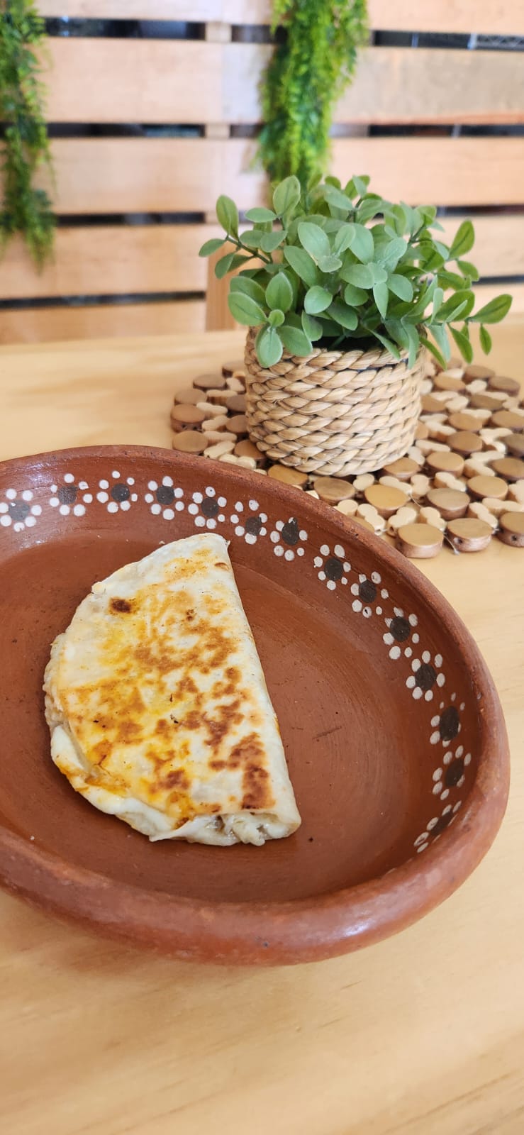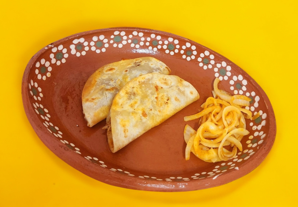 Quesadilla con tortilla de harina, barbacoa y queso adobera.
