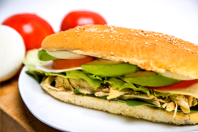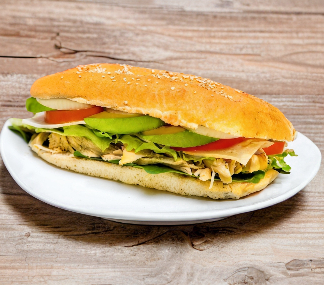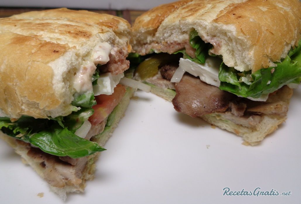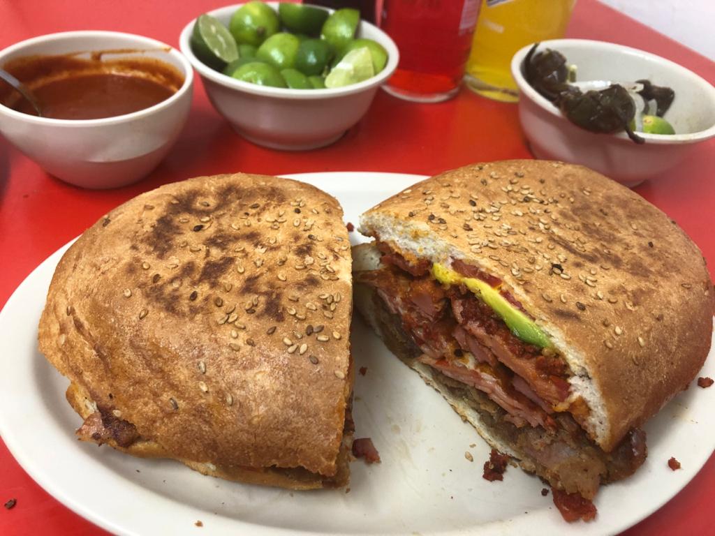 Pierna, salchicha, jamón, queso de puerco, queso panela, queso amarillo (Mayonesa, cebolla, jitomate, aguacate, salsa)