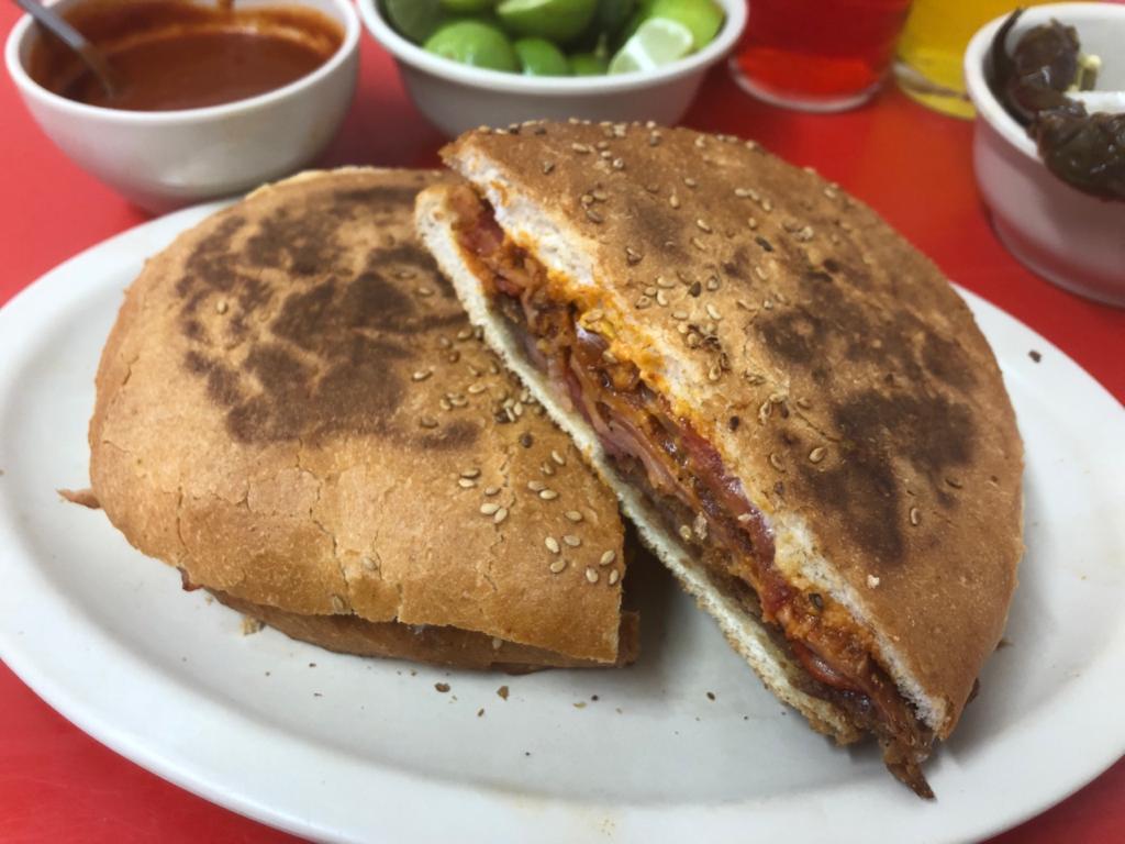 Milanesa, chorizo, queso oaxaca (Mayonesa, cebolla, jitomate, aguacate, salsa)