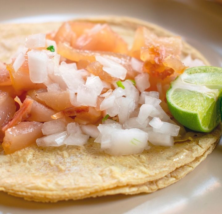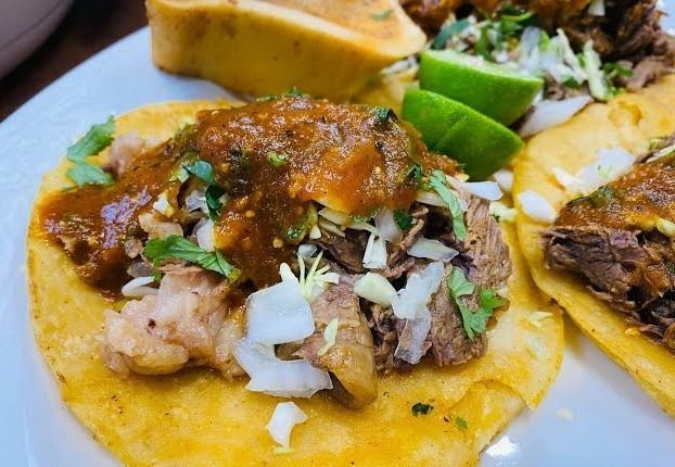Delicioso taco de chamorro en tortilla taquera del número 10.