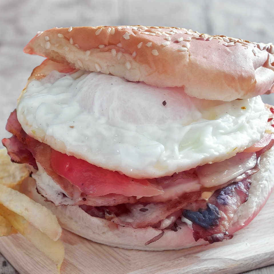 HamburguesaHuevona+2HotdogC/Tocino/Queso+Refre