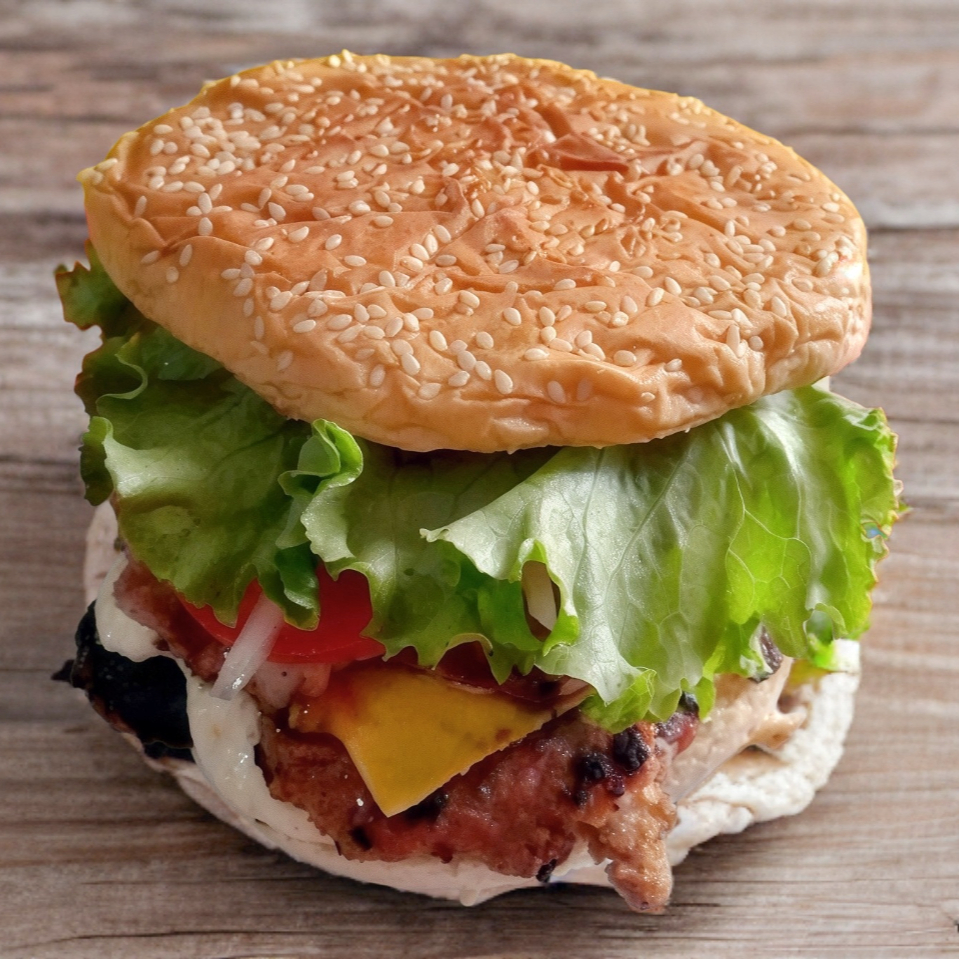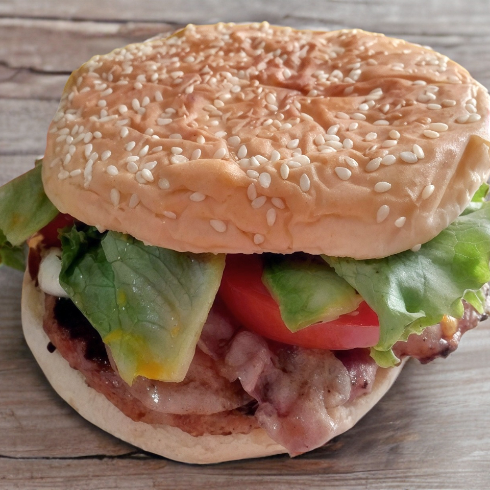 Carne, Queso Amarillo, Aguacate, Jitomate, Cebolla, Lechuga, Chiles en Vinagre, Catsup, Mayonesa y Mostaza